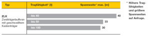 * höhere Tragfähigkeiten und größere Spannweiten auf Anfrage